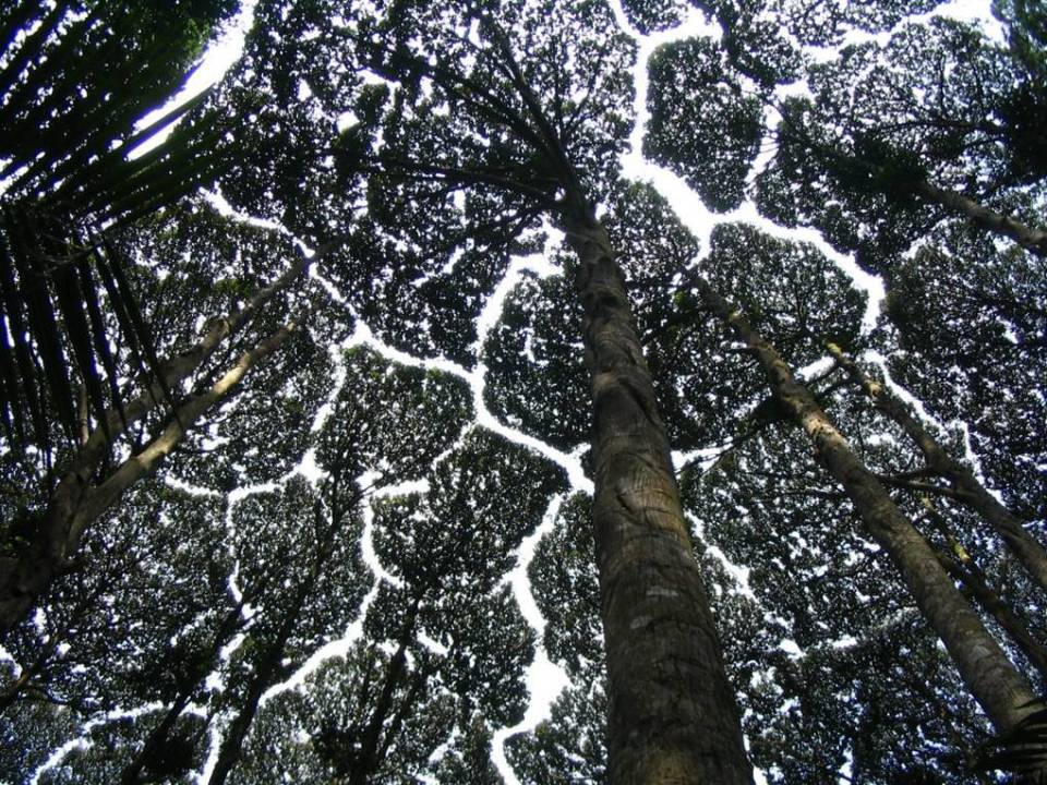 然而,你可能不知道,一些树木也会这么做,它们的树冠彼此不接触,这种不接触行为从森林上往下看并不明显,但是当你在森林的地面向上看时,就会变得非常明显,树冠之间就像是一幅分开的拼图一样存在间隙,彼此不靠近。