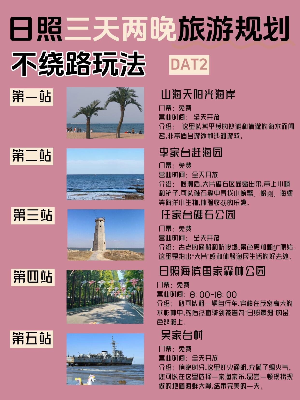 第二天:山海天阳光海岸-李家台赶海园-任家台礁石公园-日照海滨国家森林公园-吴家台村