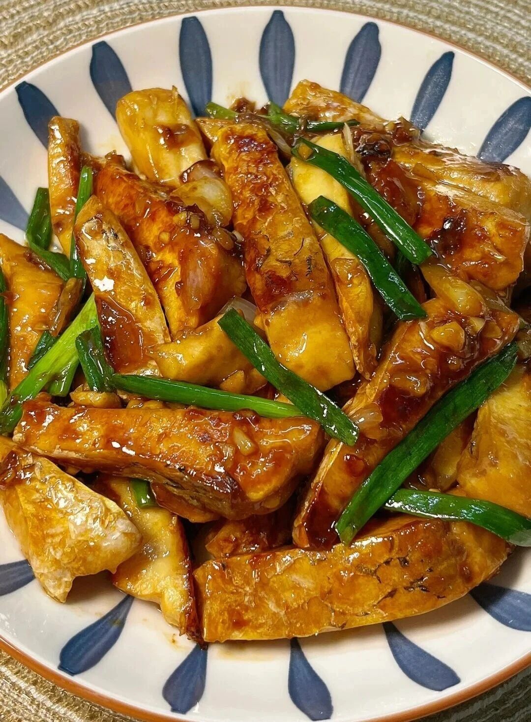4. 锅中倒酱汁小火熬至变色起泡,倒入鱼片快速裹匀,撒葱花即可。