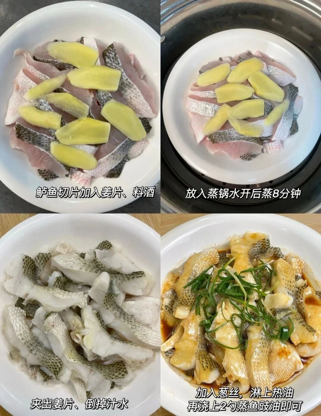 1. 鲈鱼处理干净后切片,摆入盘中,加料酒、姜片。