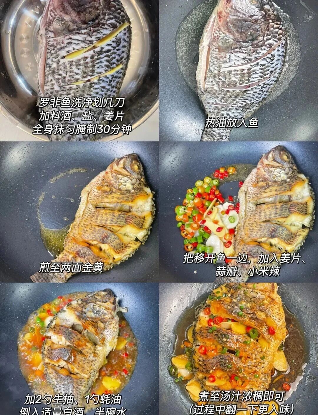 1. 罗非鱼洗净划刀,加料酒、盐、姜片抹匀全身,腌制30分钟。