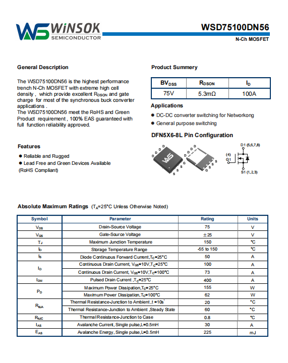二、WSD75100DN56关键特性