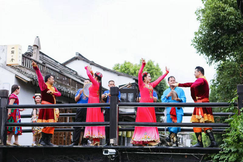 7月25日至29日,莎车文旅走进上海的大街小巷开展文旅融合快闪活动,莎车文旅推介官们身着绚丽少数民族服饰,惊艳亮相上海豫园、外滩、新场古镇、中华艺术宫、水博园等上海地标性景区,通过歌舞表演、特产品尝、文创小礼品赠送等形式与市民互动,吸引众多市民及外国游客驻足拍照。