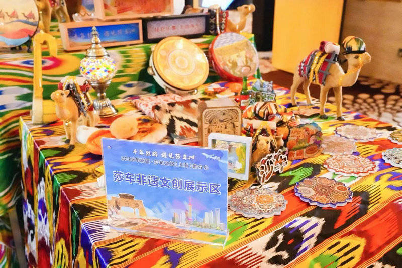 活动现场播放了莎车旅游宣传片,壮美胡杨、古朴街巷、雄奇塔莎古道等画面生动再现了莎车的自然奇观与深厚人文。莎车文旅推介官全面展示“丝路古城”魅力,发布了5条精品旅游线路,涵盖非遗文化体验游、丝绸古道探秘游等精彩内容,诚邀八方宾客感受莎车独一无二的莎车魅力。活动现场设置非遗文创展、美食品鉴台、艾德莱斯服饰展、莎车旅拍打卡点等多个互动场景,吸引了参会嘉宾驻足参观体验,成为展示莎车风情的生动窗口。