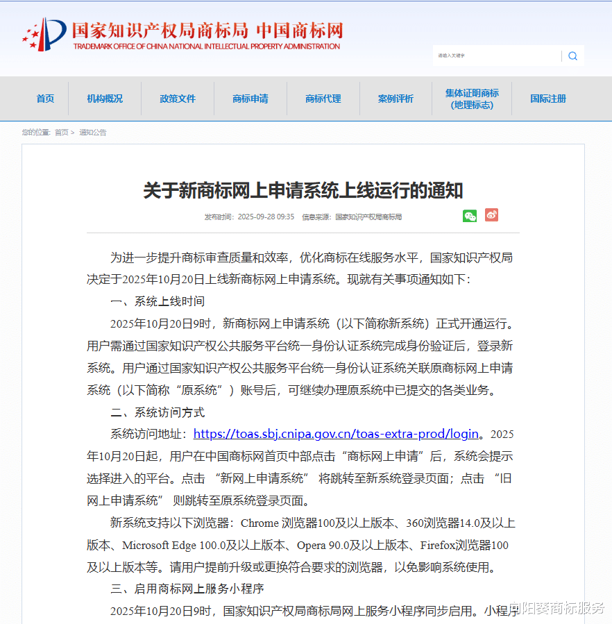 商标新系统将于2025年10月20日正式上线,官网3个大变化提前备好