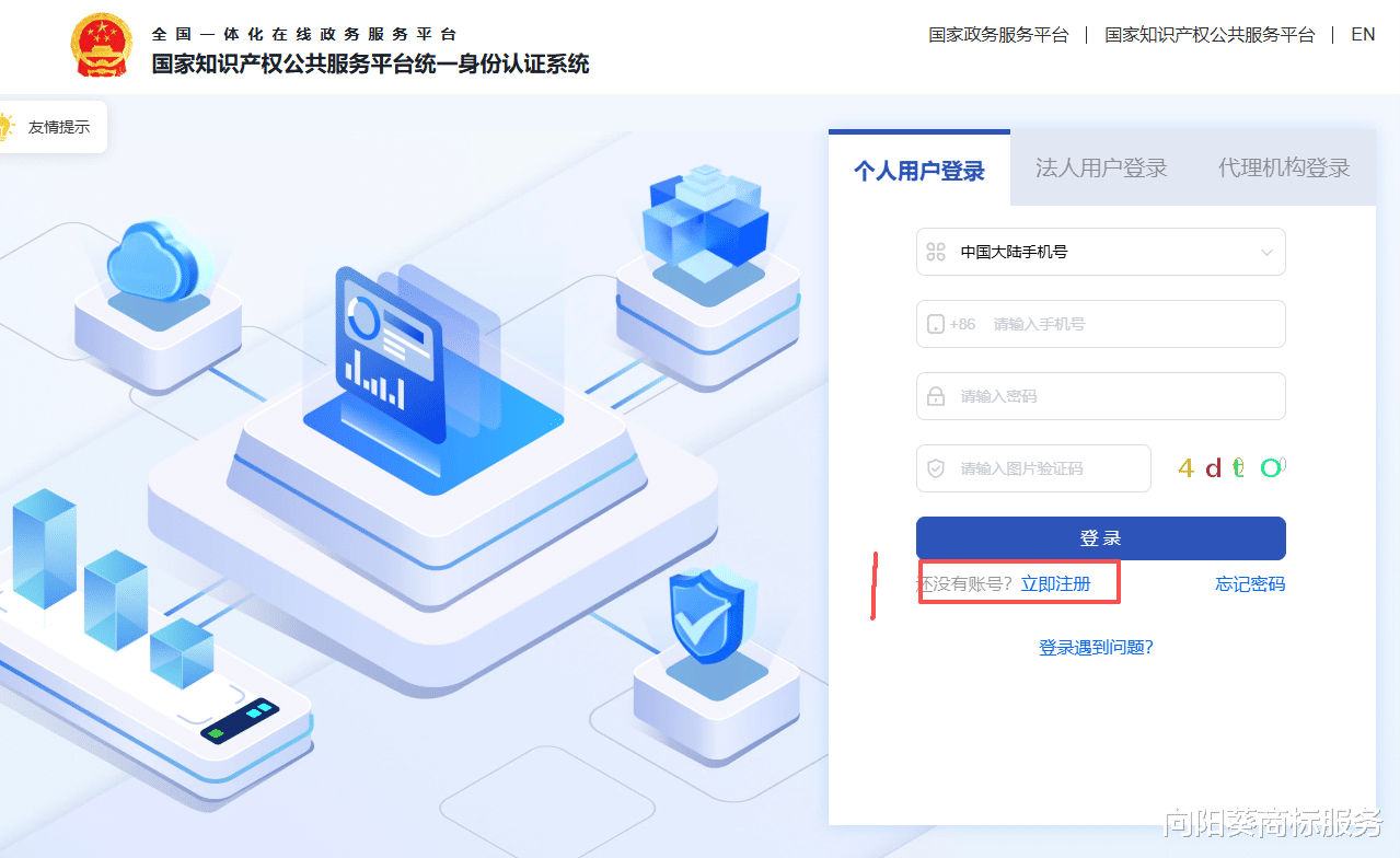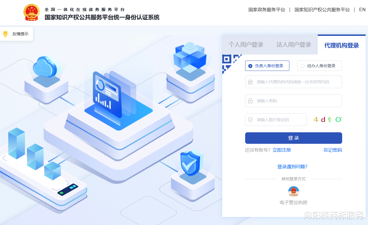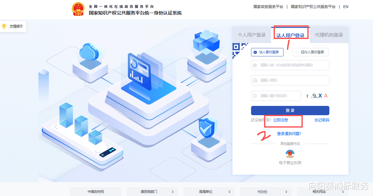 国家知识产权公共服务平台统一身份认证系统,老用户需要操作信息补录,新用户直接注册。
