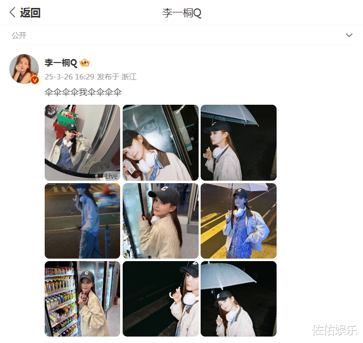 3月26日下午,李一桐在个人的社交平台上分享了一组九宫格美照,并为此配文:“伞伞伞伞我伞伞伞伞”,虽然只有简简单单的几个字,但是却凭借着俏皮可爱的形象和帅气的模样而受到了网友们的广泛关注。
