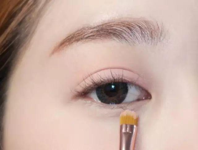 Step2:下眼睑也用杏粉色眼影略微扫一下,提亮眼神。