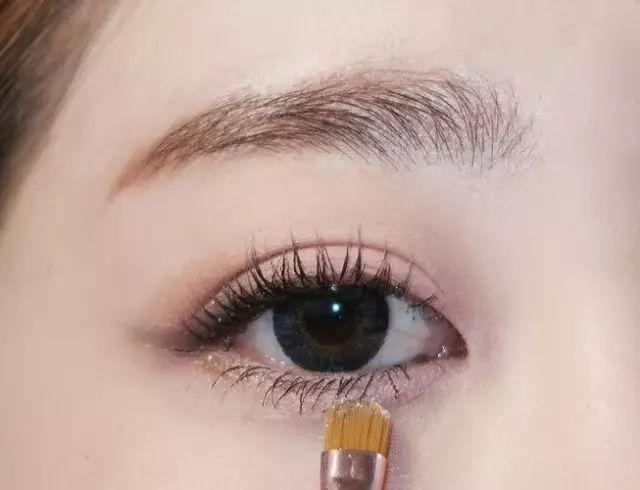 Step5:用眼影刷蘸取金色眼影,沿着下眼睫毛根部轻轻晕染。