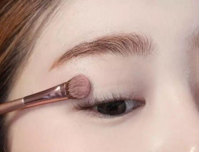 Step3:在上眼皮眼尾扫上一些淡粉色眼影,增添层次感。