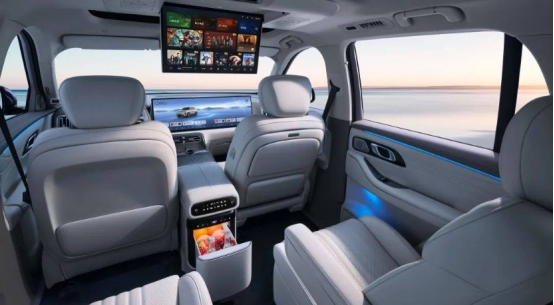 第二排是两个独立航空座椅,通风、加热、按摩都配齐了,中间留了180mm的通道,进出第三排不用折腾。更贴心的是,整车座椅支持多种一键调节模式,比如“休息模式”、“进出模式”,老人孩子操作起来也没压力。光有物理空间还不够,智能座舱才是灵魂。