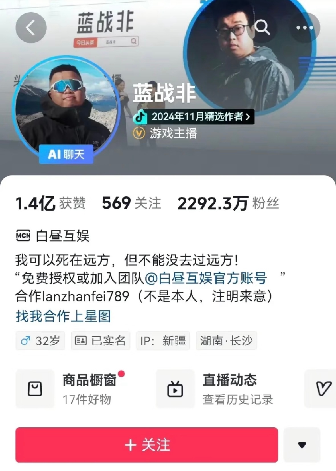 游戏主播蓝战非自曝年入500万,直播间秒变“凡尔赛现场”!