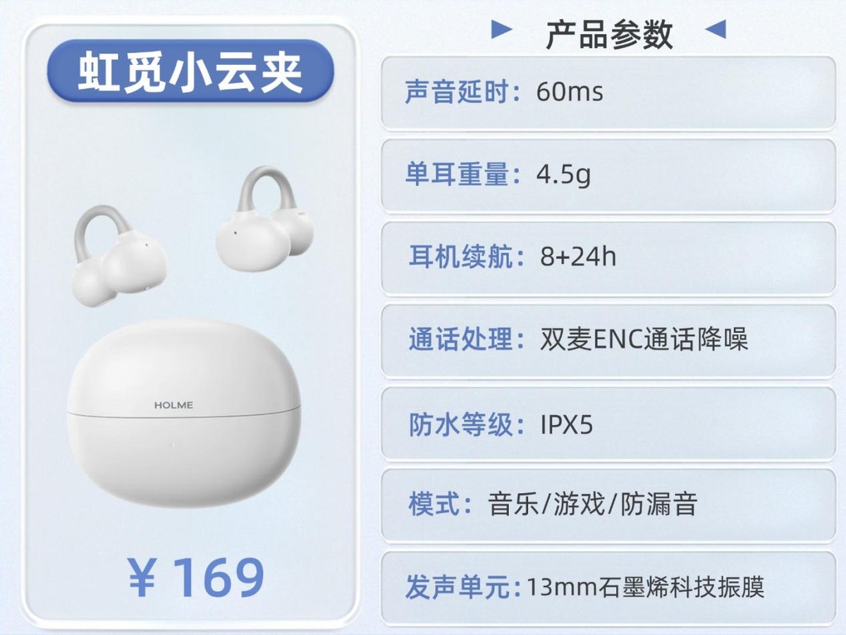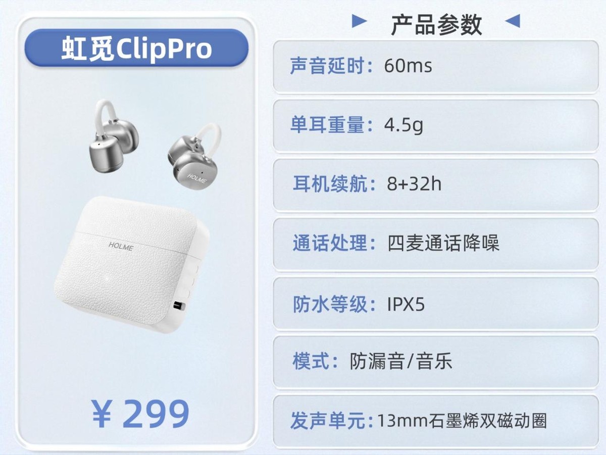 虹觅新出的这款耳夹我觉得在中端价位耳机中可以排在第一梯队。他的音质表现是同价位当中的佼佼者,13mm的双磁喇叭,搭配形变能力强的石墨烯科技振膜,音质听起来很饱满有力,气旋式引擎腔体技术,加强了声音的推力,音量更大,低音更有力,很适合听一些节奏感强的音乐,细节给得很到位。它也有防漏音模式,效果很好,很实用。佩戴上采用的前高后低的2.5mm错位设计,很贴合耳朵,戴着很稳,电池也采用的∠12弧面耳托,佩戴起来很舒服,戴久了也不会夹耳朵。