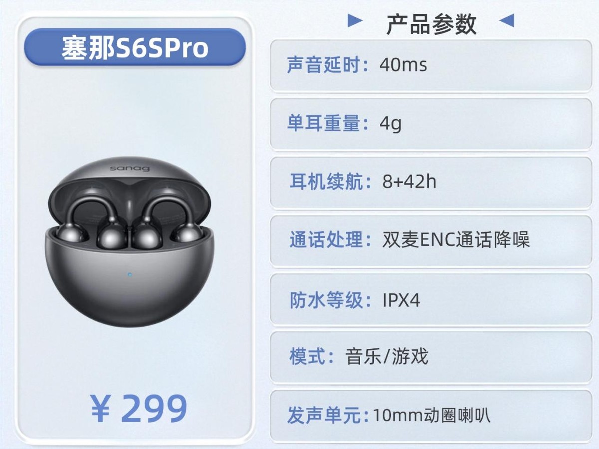 塞那这款耳机佩戴体验很不错,单耳仅 4g 重,搭配 C 形桥设计,不仅轻盈舒适,而且长时间佩戴也没有夹耳感,特别省心;音质表现就相对一般了,听歌时会感觉杂音有点多;续航能力倒是不错,总续航可达 42 小时。