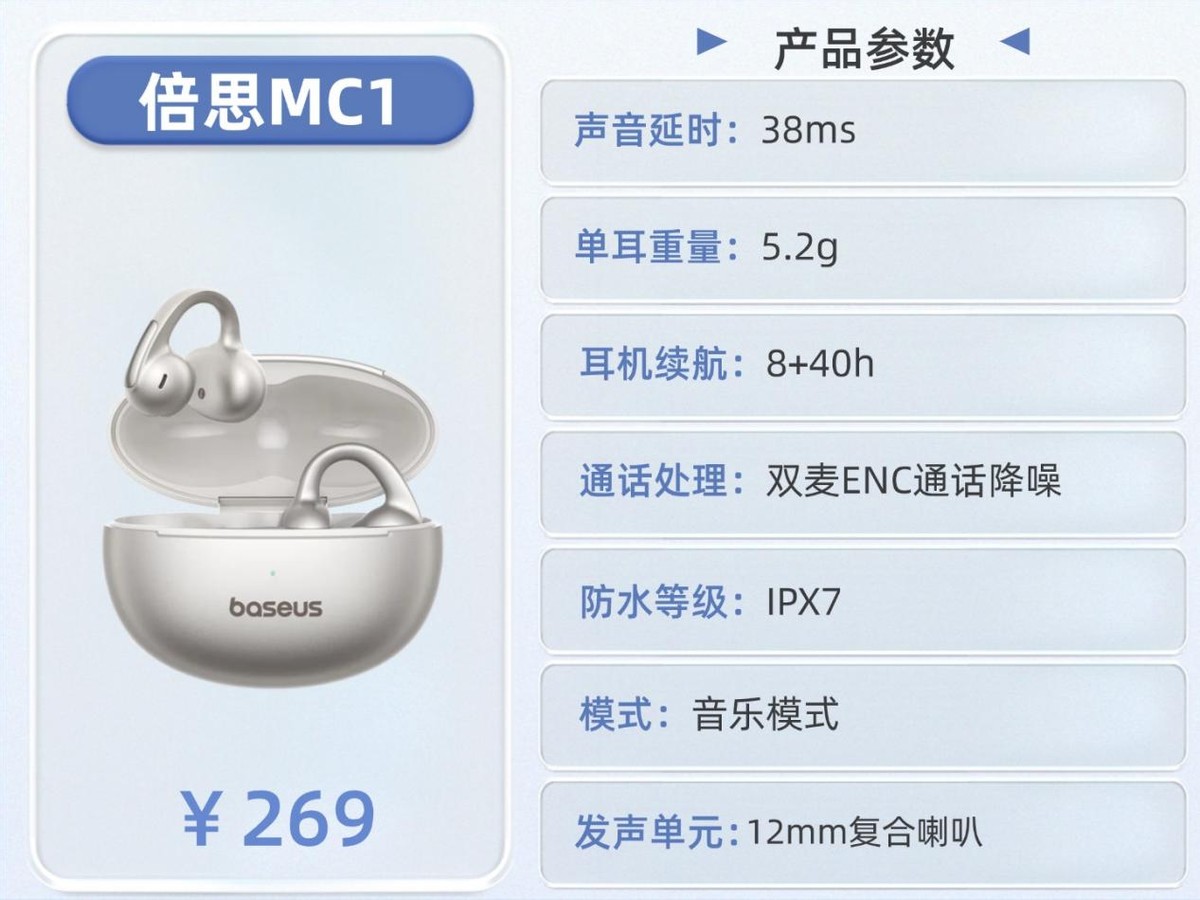 这款耳机重量很轻;它采用开放式机舱设计,拿取特别方便,不用额外开盖;支持双设备同时连接,这点很实用,不用频繁切换,省心不少;具备 IPX5 级防水能力,日常溅水、运动暴汗都能应对,不用担心损坏;续航表现不错。