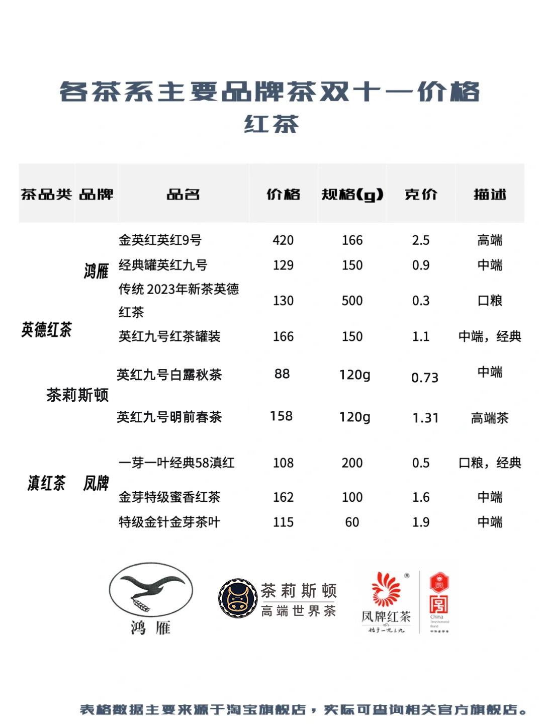 一、普洱茶1.红茶口粮茶品牌,推荐“茶莉斯顿”英红九号;花香果香,蜜甜回甘。