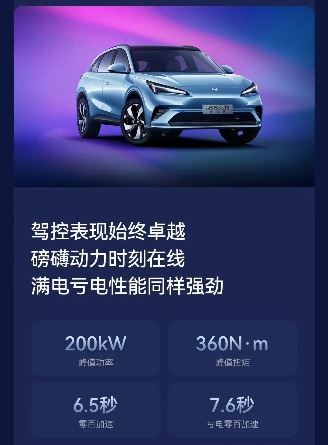 2、新车峰值功率达200kW,峰值扭矩360N・m,零百加速仅需6.5秒。即使在亏电状态下,零百加速也仅需7.6秒,真正做到“满电亏电,性能如一”。