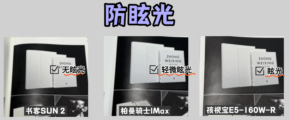 而柏曼骑士IMAX则是出现了轻微的眩光,在一定程度对视觉造成了影响,而孩视宝虽然也是采用上下发光设计,但是实际眩光比较明显。