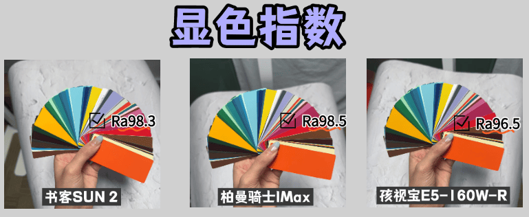 而另外要注意的是孩视宝E5-160W-RS,虽然实际显色指数达到了Ra95以上,但是相对其他两款来说,表现比较一般。