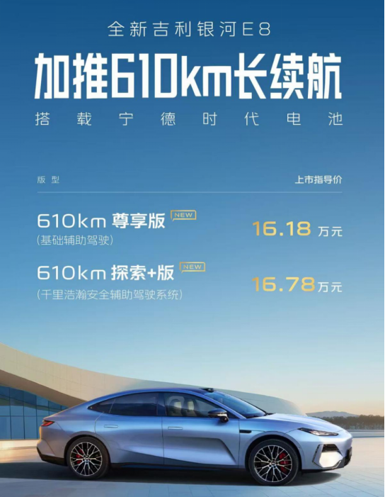 在16万级纯电轿跑市场,“选空间就没性能,要续航又缺舒适”的困境,让不少消费者迟迟下不了手。但吉利银河E8加推版的登场,彻底打破了这种局限,以16.18万-16.78万元的定价,在续航、性能、智能上实现“三优”,成了该价位段里难得的“全能选手”。