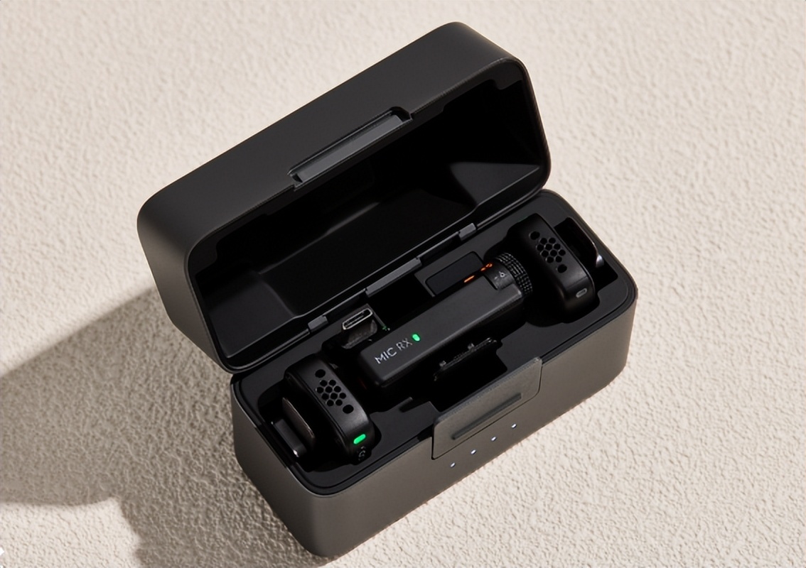 DJI Mic Mini是一款超迷你的无线麦克风,它设计小巧轻便,充电盒可以收纳下一个接收器、两个发射器和两个手机插头,就连附赠的3.5mm连接线也能进行绕线后直接进行收纳。