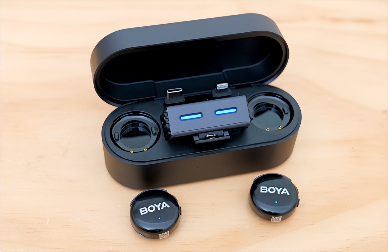 外观上,Vimo S接收器采用独特磁吸设计,体积小巧,融合于多功能一体化的充电仓内;充电仓也较小巧轻便,开盖即连,具备自动开关机功能。另外,和南卡Qmic一样,它的USB-C接口作为充电接口时,可直接为手机充电,实现边充边用,保证手机在直播录制中不断电。