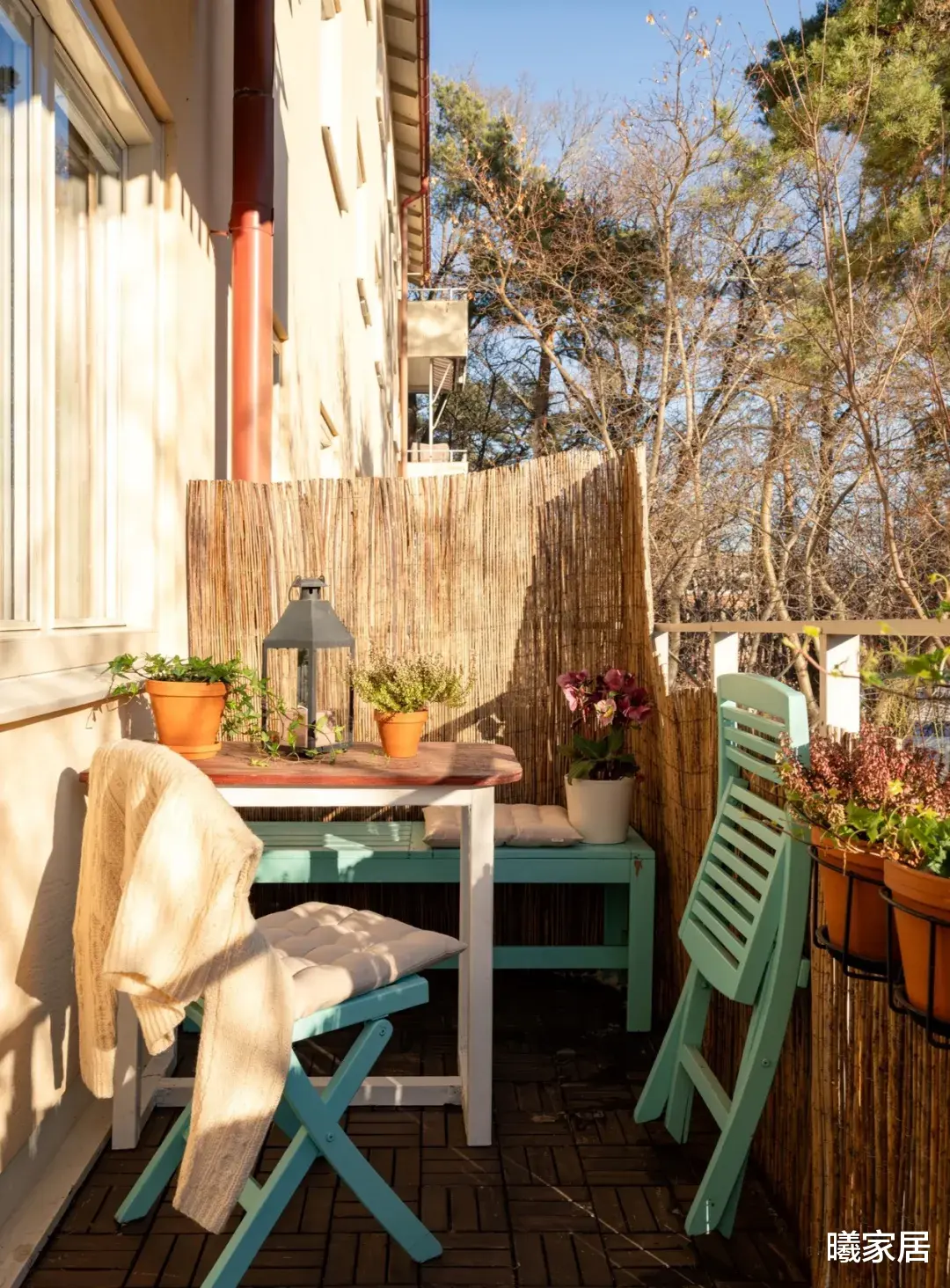 温馨的露台上,有一片篱笆墙,木质家具悠然以待,惬意度假感就有了,在露台晒着太阳哼着歌变得有画面感了。阳光、树木、鲜花共处,时光在这里变得缓慢,每一刻都是与自然共舞的享受。