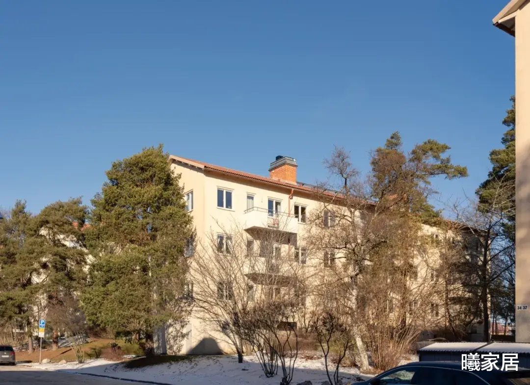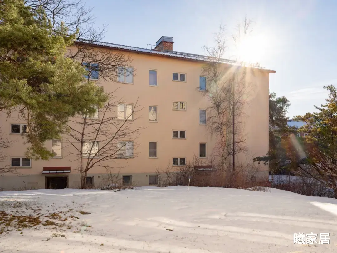 一间室内64平公寓,是一座典型的北欧窄屋,外部建筑是建造于上世纪40年代初期的房子,风格依然时髦,外墙也重新粉刷过,并且因为身在花园一样的环境中,似乎并没有一丝破旧之感。