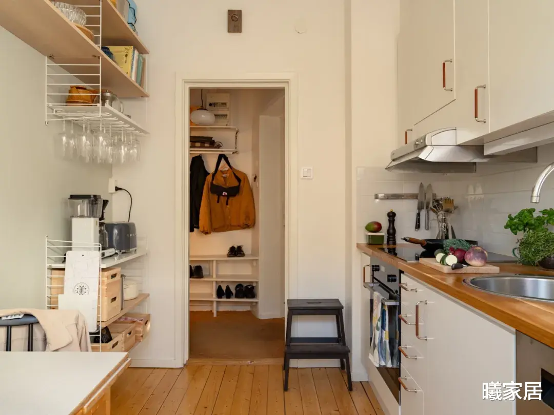 有阳光的厨房是一种享受。这就是一个令人羡慕的的厨房,阳光温柔的折射到每个小角落,让人想要好好生活。从白色现代橱柜到旧木质方桌,从温柔的吊灯到精致的String墙面置物架,每一件物品都如此美妙。