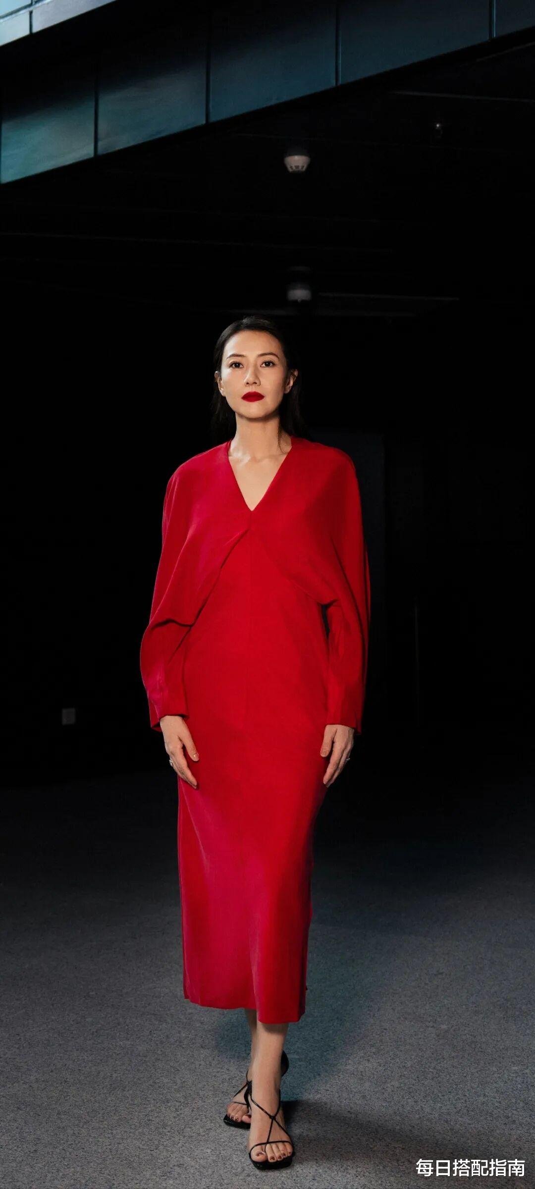 这一份红色,穿在高圆圆身上,展现的不是冲动的张扬,而是一种大气、从容的成熟女人味。