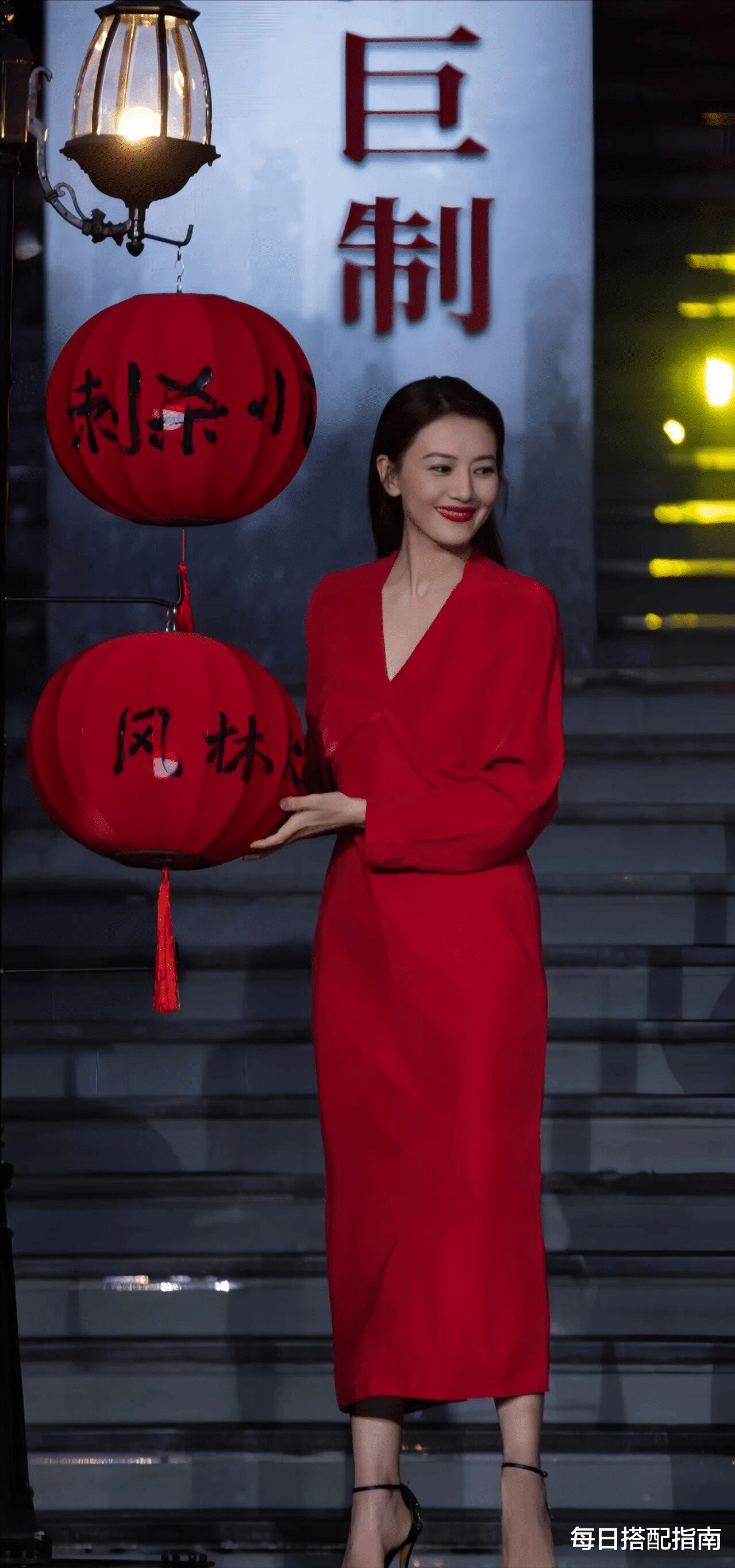 妆发简洁:她的妆容以大红唇为点睛,和裙子相互呼应,强化了整体氛围。其余部分保持自然,避免了“全身争艳”。