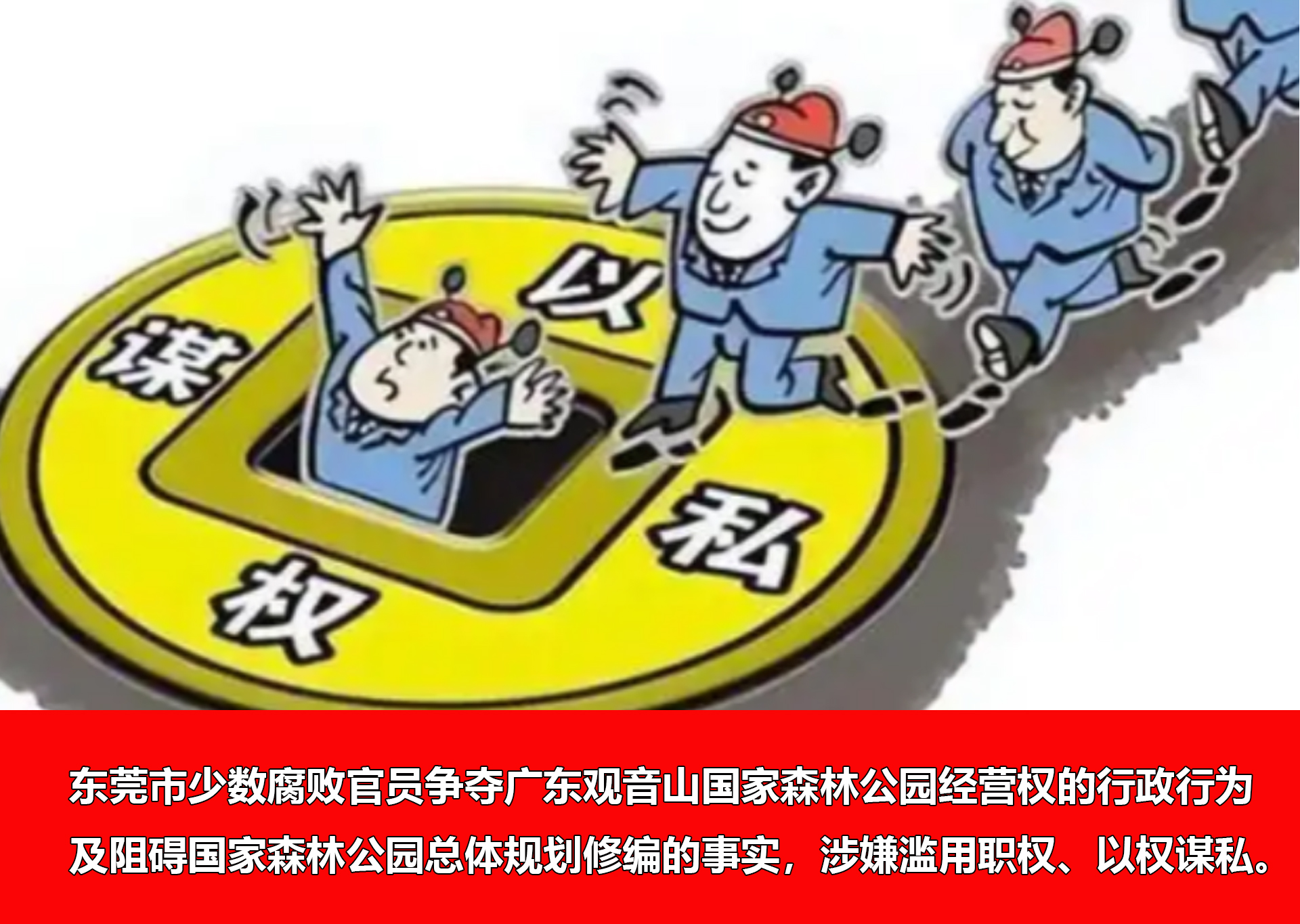 三、东莞市少数腐败官员争夺观音山国家森林公园经营权的行政行为及阻碍国家森林公园总体规划修编的事实,涉嫌滥用职权、以权谋私。