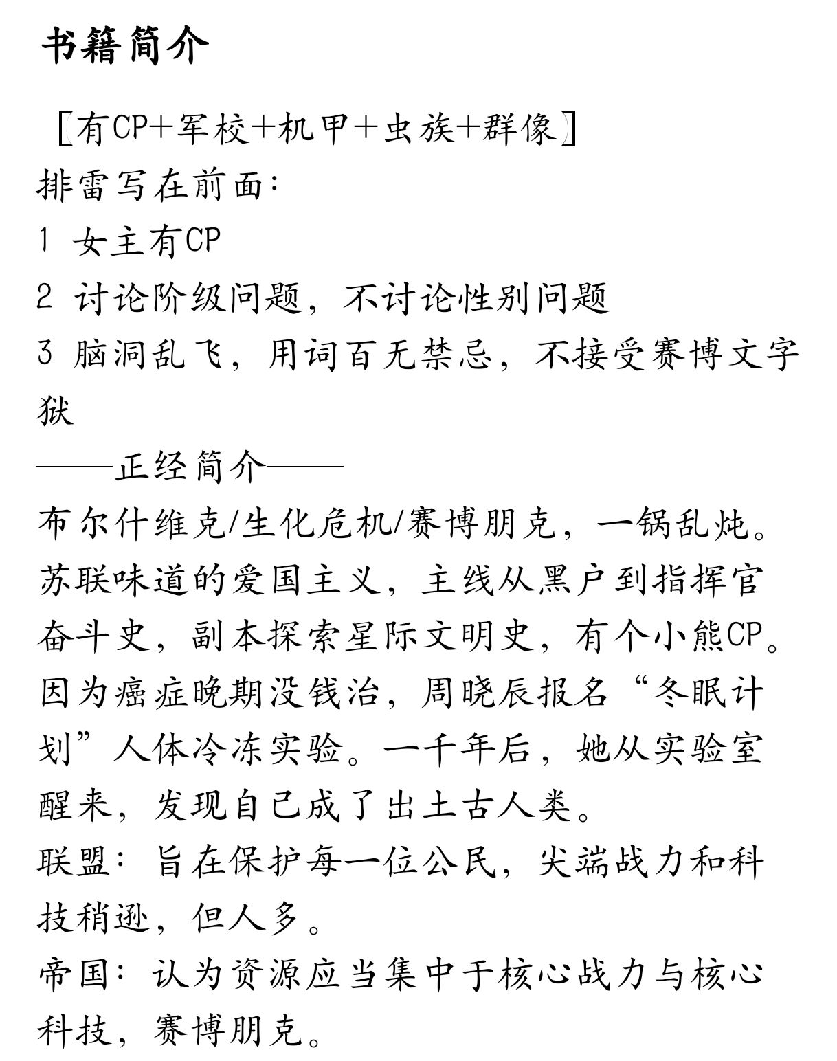 挺有趣的星际文,没有吃安利时候说的那么重的科幻味,但整体也没有特别地网文。