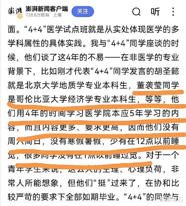 董袭莹呢?4年非医本科+4年硕博规培专培都结束,算下来总共4年医学专业。