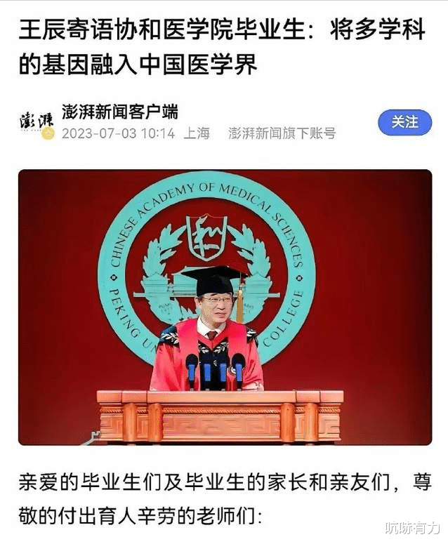 当这位哥伦比亚大学经济学专业本科生,在毕业典礼上被王辰院士亲自点名表扬时,台下寒窗苦读十年的医学生们心情十分复杂。