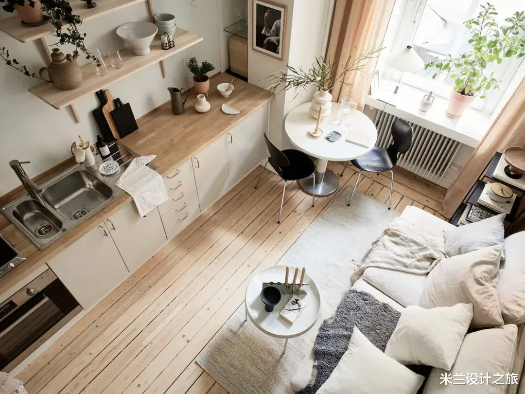 HYZ Studio新作,一间带有夹层的19 ㎡小公寓,其布置得十分精巧,选择了白色作为基础色调,这样做的好处是能够拓展空间感,并且还能反射光线。光线仅来自一扇窗户,幸运的是,这扇窗户很大,采光也很好。