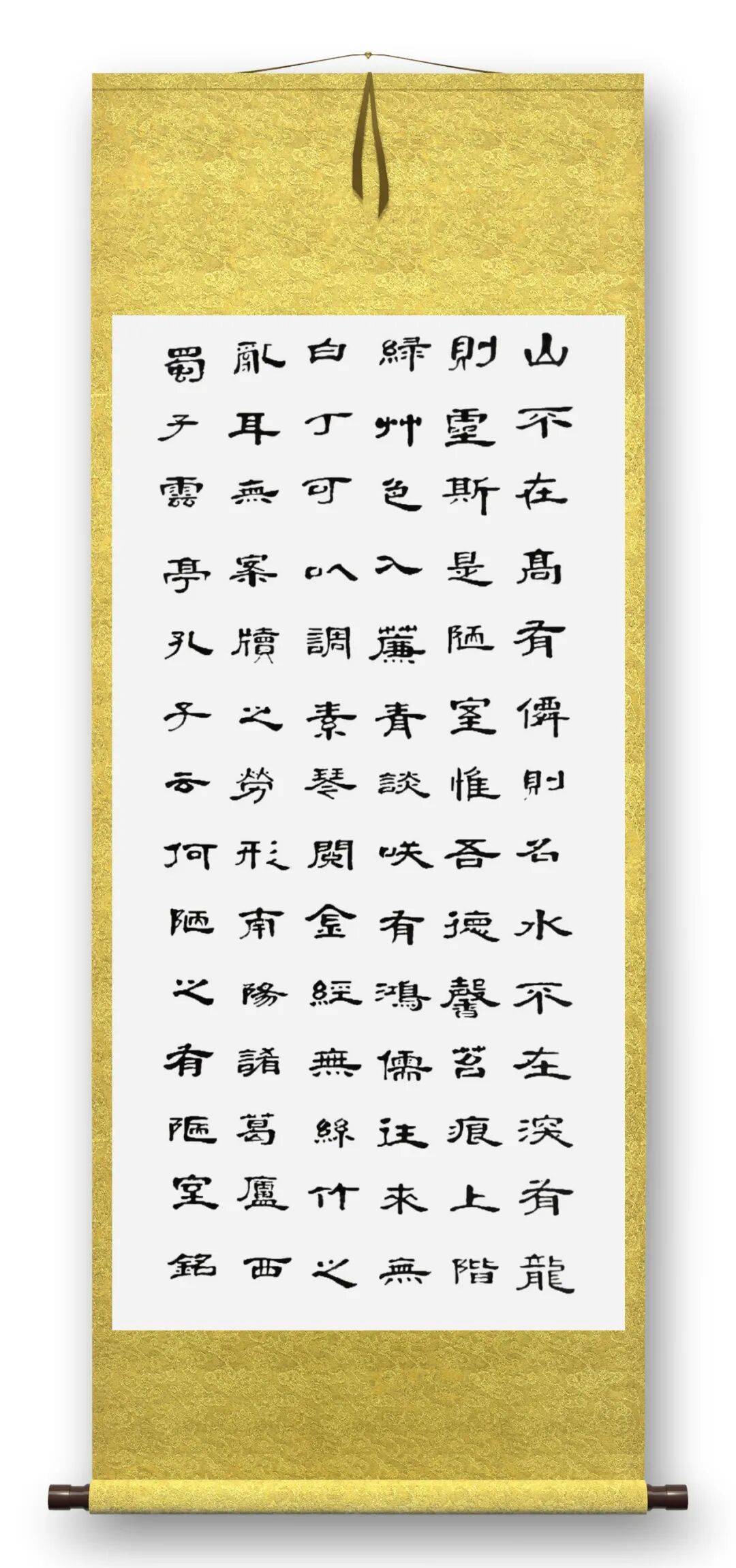 再看李谟清老师书写的《陋室铭》,却又不刻意做作,尽显古朴典雅之态。整幅作品布局规整,字距行距均匀,仿佛一座古朴的庭院,井然有序。通过书法的醇厚笔意,将刘禹锡“斯是陋室,惟吾德馨”的安贫乐道、高洁傲岸之情,缓缓铺陈开来,让观者在领略书法艺术魅力的同时,也能感受到文中所蕴含的精神力量,实现了书法与文学的深度共鸣。
