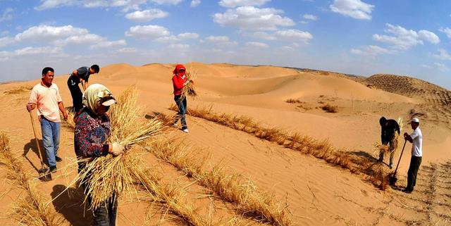 为了更好地利用曾经沙化的土地,政府和农业专家在毛乌素沙漠边缘开展了农作物种植试验。