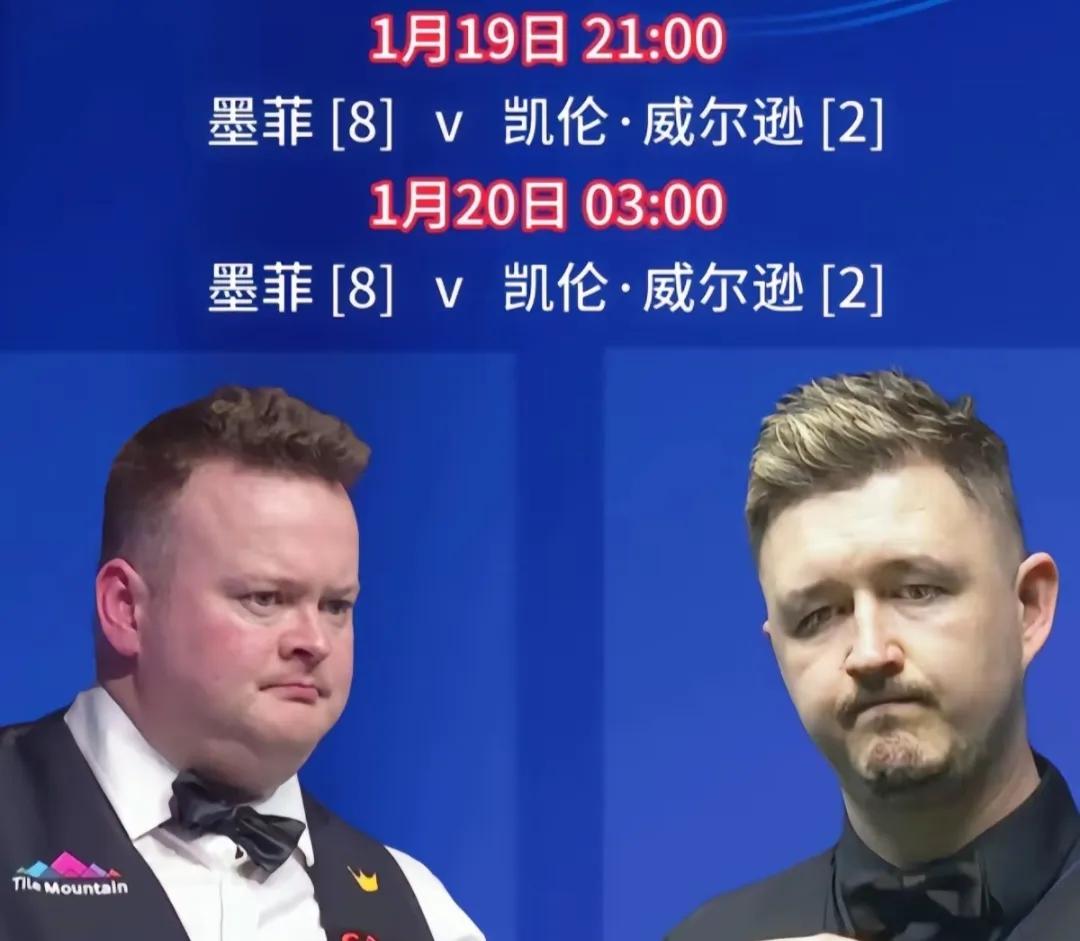 决赛第二阶段:北京时间1月20日凌晨3:00开始,肖恩·墨菲对阵凯伦·威尔逊。