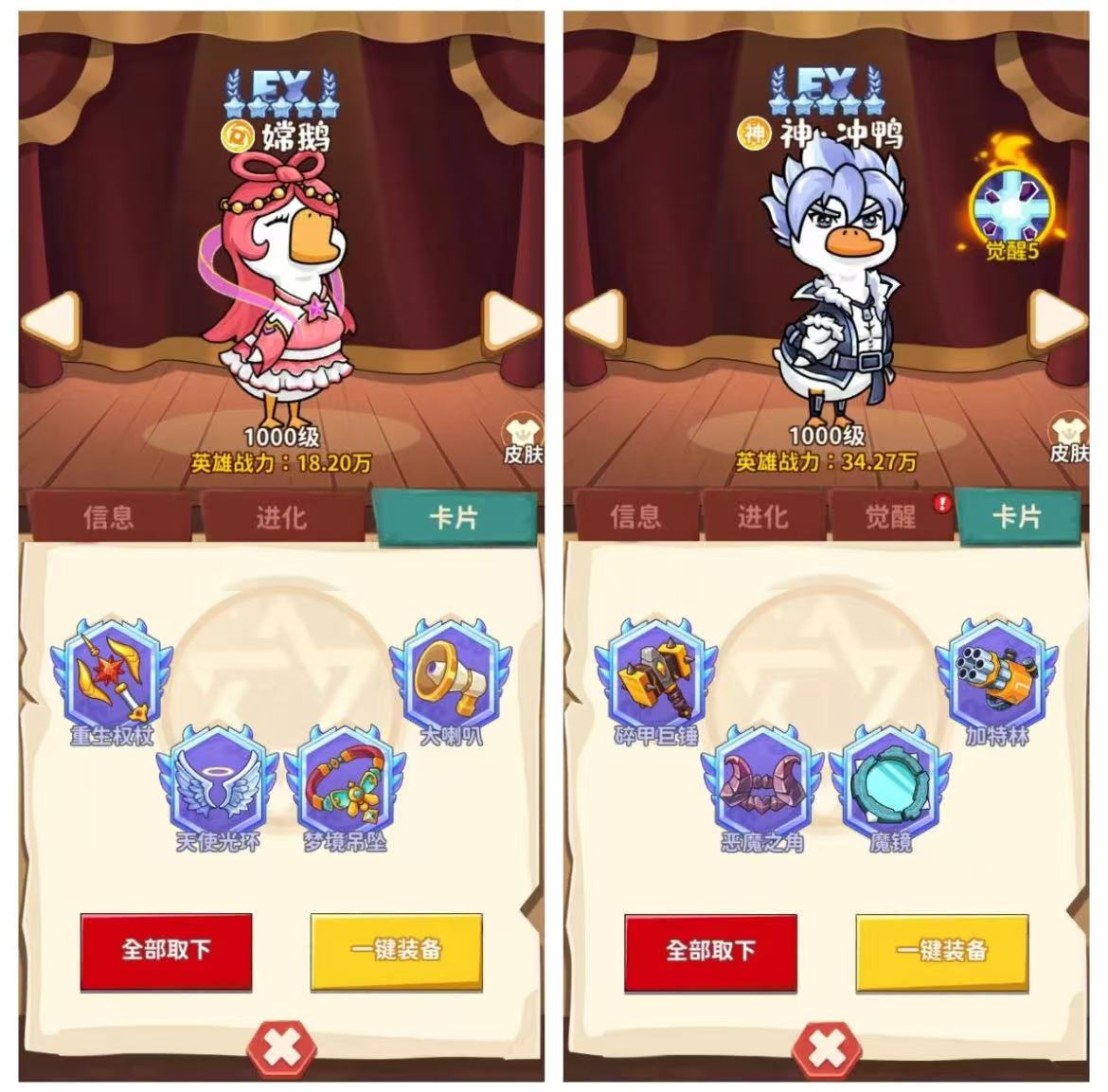 · 进化:收集一定数量的“鸭子碎片”(由重复获得的鸭子分解而成),可以将鸭子进化到更高星级,大幅提升其属性。