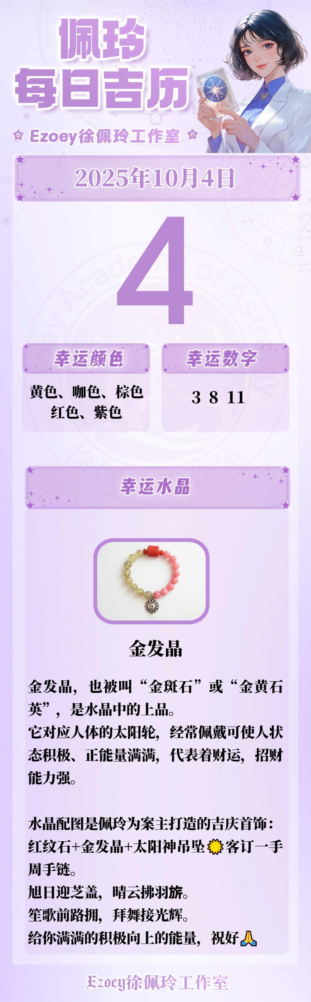 以及,今天如果需要处理到有关出行、搬迁、外地、签证、教育、师长类相关的事务,也是非常适合的。如果有抽奖或者重要合作的事宜不妨安排在幸运时间段区间。