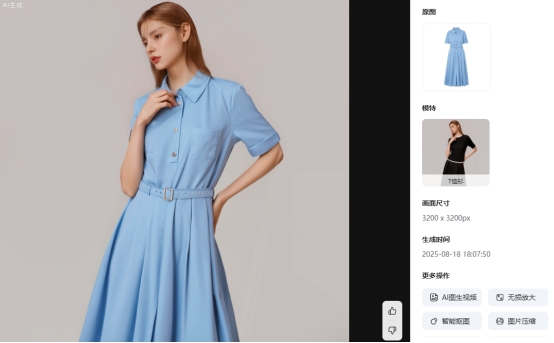 并且用起来也很简单,你只需要上传一张背景干净、光线均匀的服装平铺图,然后从系统提供的丰富模特库中选择心仪的模特形象和姿势,点击生成按钮,几分钟内即可获得高质量的模特效果图。为了满足大家的需求,易可图还支持批量处理,你可以一次性上传多达30件服装进行生成,上新效率嘎嘎提升。