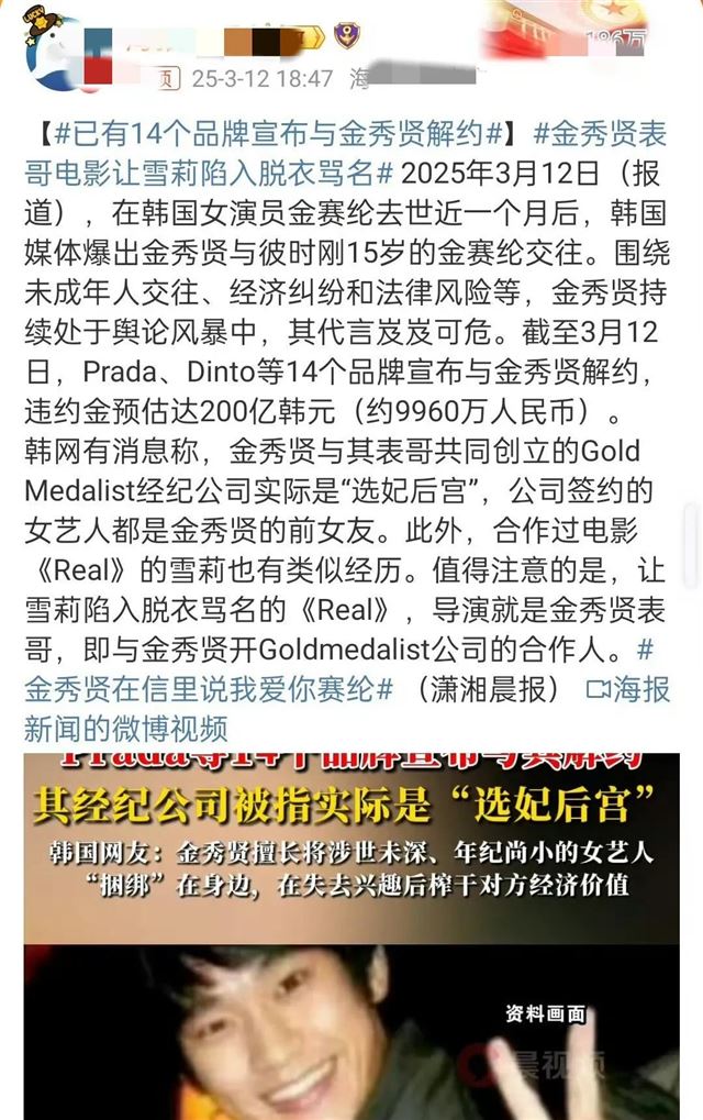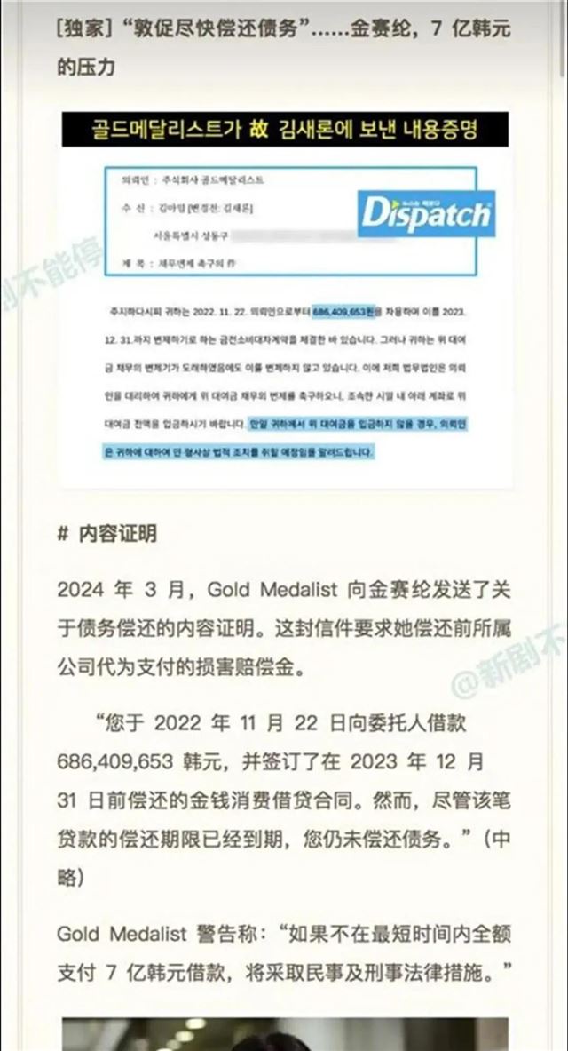 更令人震惊的是,两人分手后,金秀贤被指多次向金赛纶索要钱财,金额高达数亿韩元。