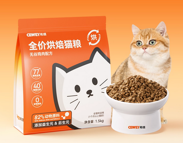 希喂的加工工艺也很有说法,是由品牌自主研发的Bak3渐进式烘焙技术,依托汉欧的专业设备生产,做出来的猫粮比普通的烘焙猫粮能多保留50.16%的热敏性营养。而且烘焙过程中会自然激发食材本身的肉香,能吸引猫咪主动进食,初食率更是高达95.21%。