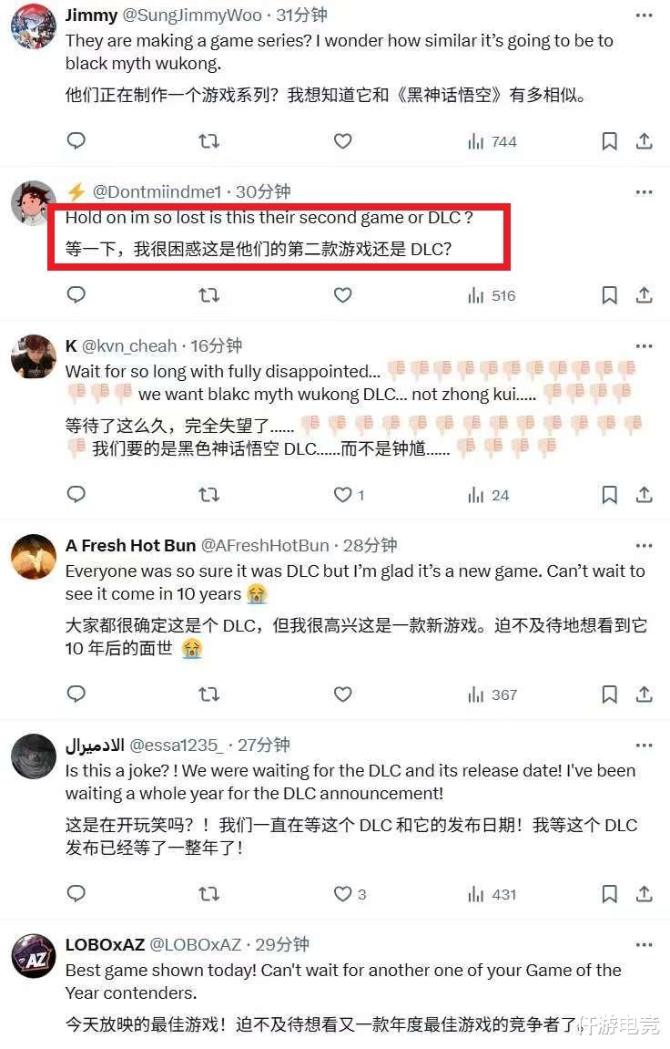 然后还有一些海内外玩家不理解冯骥、杨奇所在的“游戏科学”公司,为什么不做黑神话DLC,其实正是玩家们对DLC的期待太高了,导致“游科”团队制作起来更难了,因为压力大。
