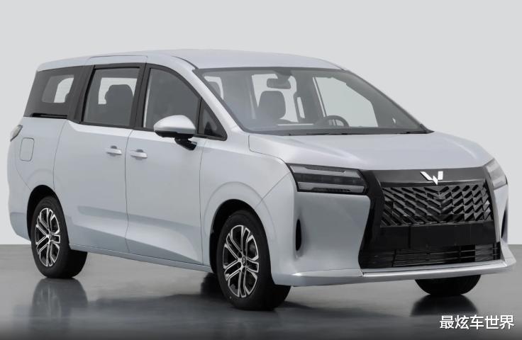 新车的外形设计和五菱过去推向市场的MPV车型并没有直接的“设计联系”,中网使用了熏黑V字形扩散镂空设计,纺锤式的结构让人很容易联想到高档的豪华MPV设计,做工细腻简洁,符合大众审美品位。同时两侧LED大灯组在设计上突出了差异化,上下对称的“n”字形LED白色灯带与中网相接,对整个车头的横向设计进行了视觉拉伸,结合前包围两侧狭小的导风槽装饰与前唇镀铬包边来看,整个的辨识度较为惹眼。这里值得一提的是,新车燃油版和插混版采用了“熏黑中网”设计,而纯电版仅保留下格栅,中网采用了全黑化的设计。