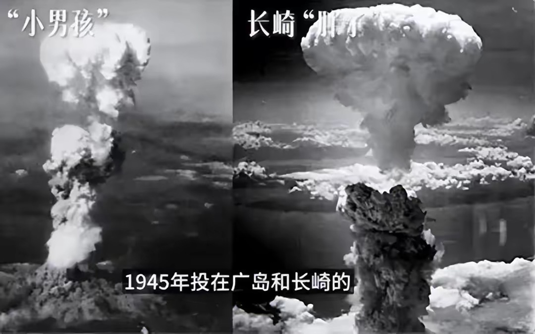 一个是美国往日本广岛和长崎丢了两颗原子弹,另一个是苏联仅用两个星期的时间消灭了六七十万的日本关东军。
