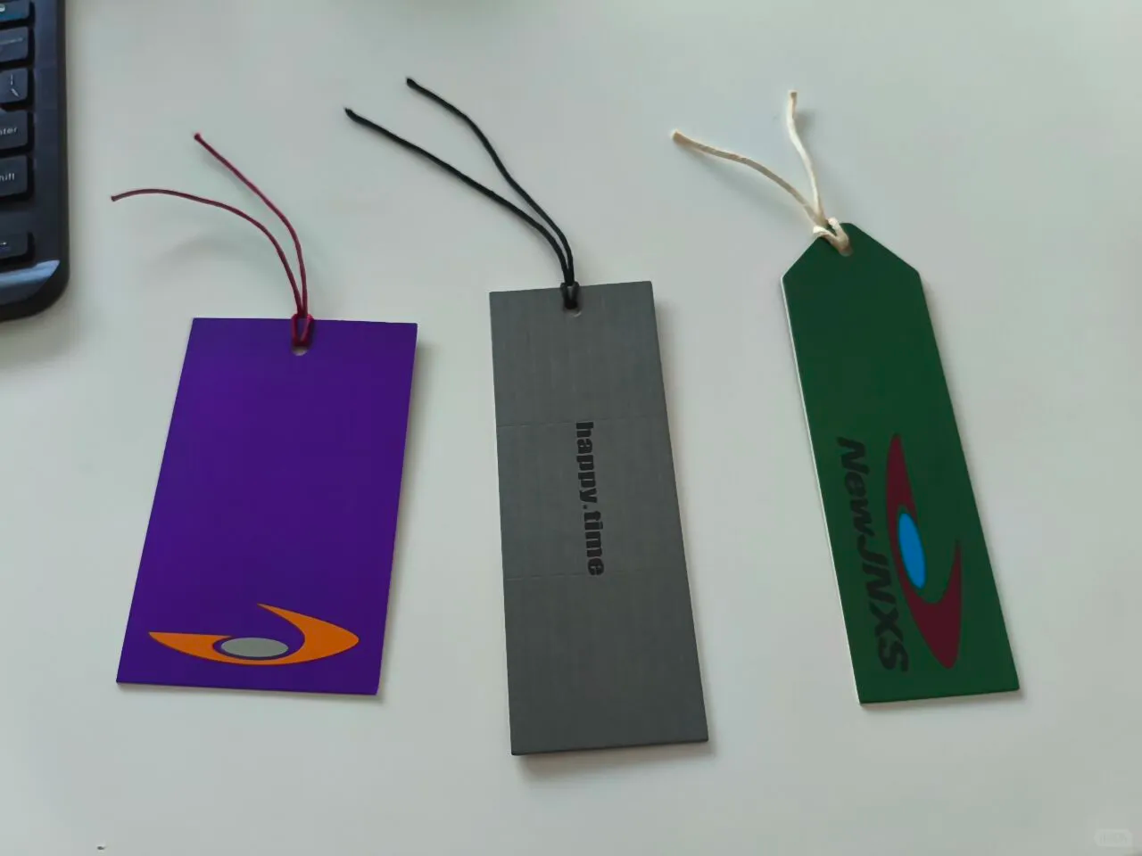 吊牌的绳子是自带卡扣的,也不用打结。要是拴在衣服的吊牌上,还可以用来做书签。把它夹在书里面,绳子露在外面就可以起到提示的作用了。