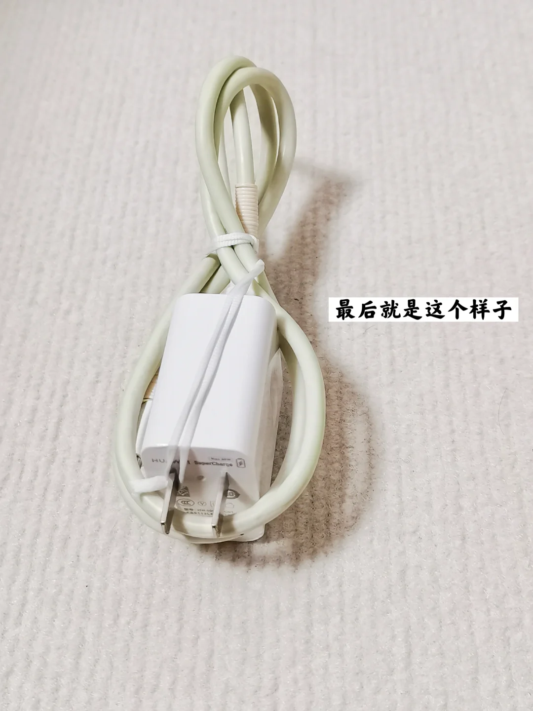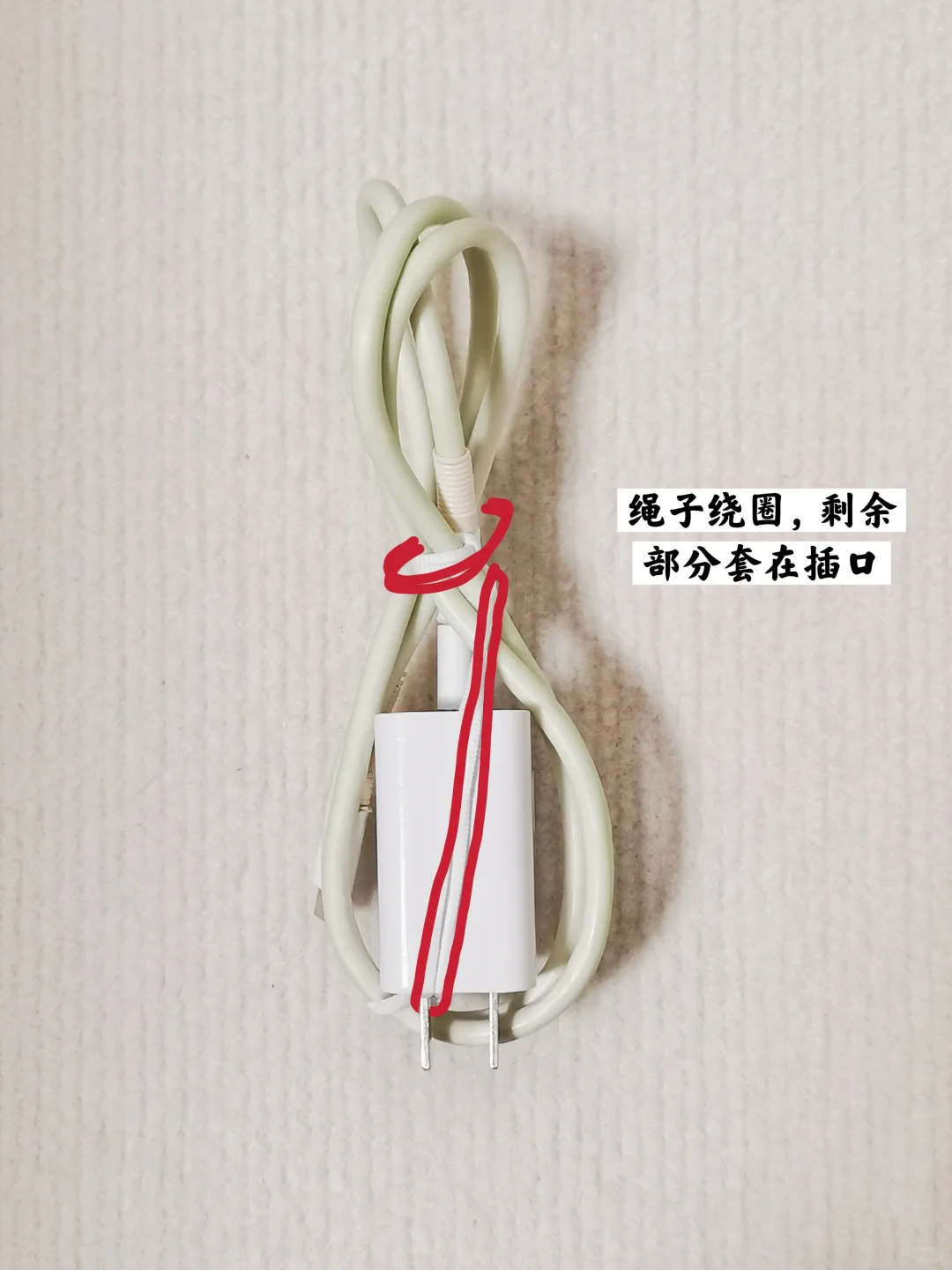 剩余的部分账号可以套在充电插头上。这样收纳起来,数据线就不会乱七八糟了。