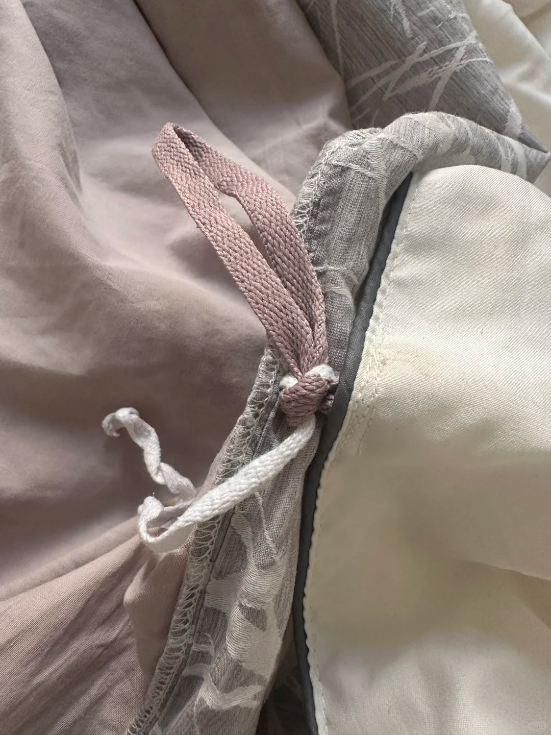 刚才说到被罩里面固定被子的绑带,除了用蛋糕绳子代替之外,还可以用闲置的鞋带。